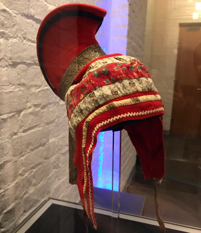 Ládjogahpir, man Theodor Schvindt lea oastán Ohcejogas Dálvadasa gilis Gádjá-Nillás (Nils Vuolab) ja su oappás Gádjá-Márehis (Marith Rasmus, is. Vuolab, ovddeš Pieski), jagi 1902. A Sámi horn hat from the Dálvadas village, Utsjoki. Purchased in 1902 by Theodor Schvindt from Nils Vuolab (Gádjá-Nillá) and his sister (Gádjá-Máret, Marith Rasmus, née Vuolab, former Pieski). Photo: Pirita Näkkäläjärvi